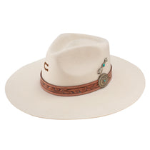 A more refined, elegant choice, White Sands is an ivory felt hat with a pinch front crown and concho-accented leather band—perfect for dressing up your denim or adding polish to a sundress.
