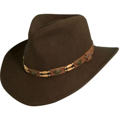 • Crushable, Water Repellent Wool Felt Outback with 3' Brim
