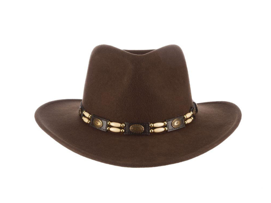 Experience the ultimate blend of style and functionality with Knoxville, our men's water repellent wool felt outback hat. Made from high-quality materials, this hat offers superior protection against the elements, ensuring you stay comfortable come rain or shine. The leather band adorned with conchos and beads is a statement piece that adds a touch of sophistication to the hat, making it the perfect accessory for any fashion-savvy adventurer. Whether you're exploring the great outdoors or just running errands around town, this hat will keep you looking and feeling your best. So why settle for anything less? Get your hands on Knoxville today and take your style to the next level!