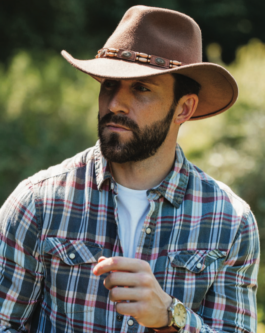 - Crushable, Water Repellent Wool Felt Outback with 3' Brim