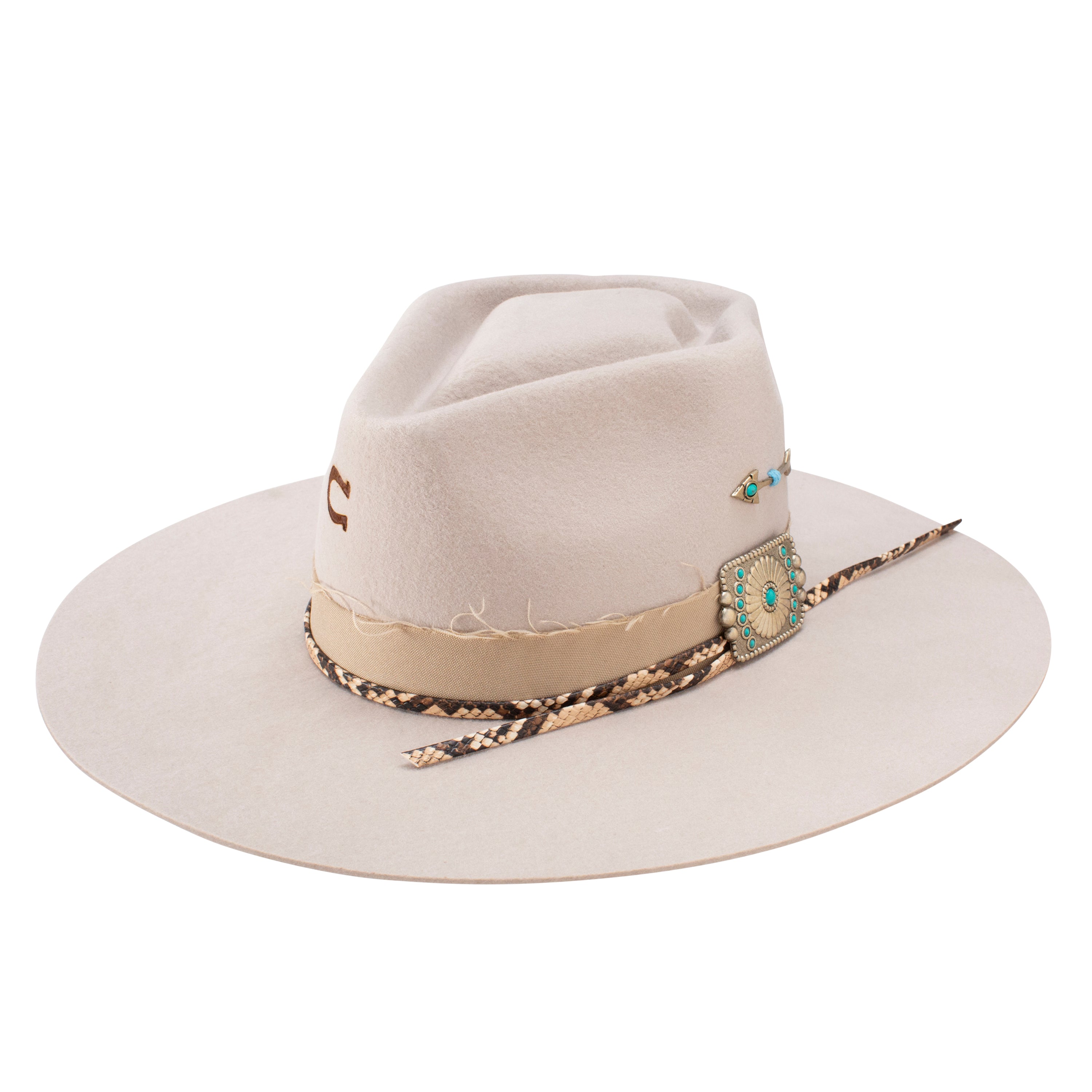 This is the perfect hat for the adventuress in you! The Spear Point in Silver Belly stands out with its frayed edges and faux snakeskin on the hatband. As part of the Charlie 1 Horse Rambler Collection, this hat will not disappoint!