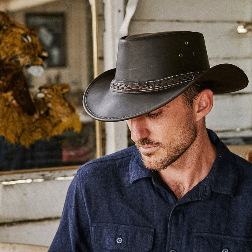 You don't have to live in down under to rock this hat! Made from durable buffalo leather, this hat offers sun protection and is waterproof, making it perfect for outdoor activities. It's also stylish enough to wear for a night out on the town!