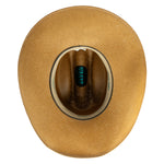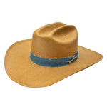 The Lone Wolf is in a class by itself, with its rich cognac color and rich shading.  The denim hatband lends a flaire of playfulness while the concho adds to the western flaire.  The Lone Wolf is a winner for a night on the town or a day with the girls!