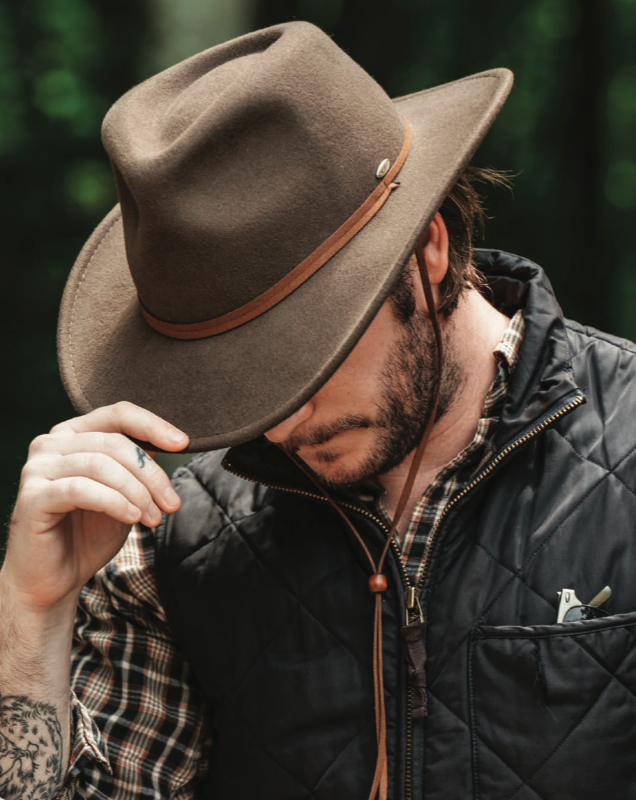 - Crushable, Water Repellent Wool Felt Outback with 3' Brim