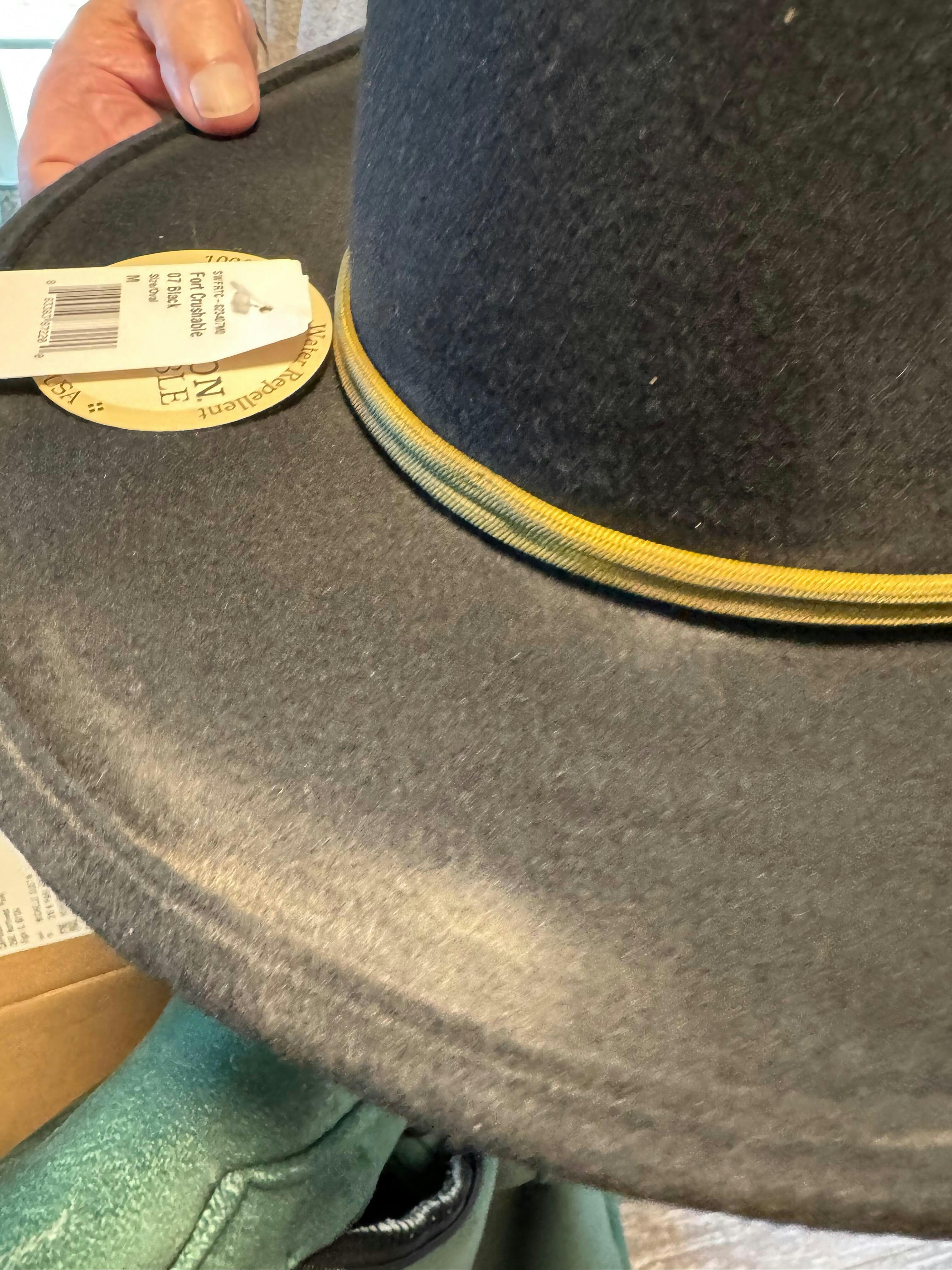• Color is available in a Vintage, Aged Black or Silver Belly. This is the intended look of the hat, and does not constitute damage.