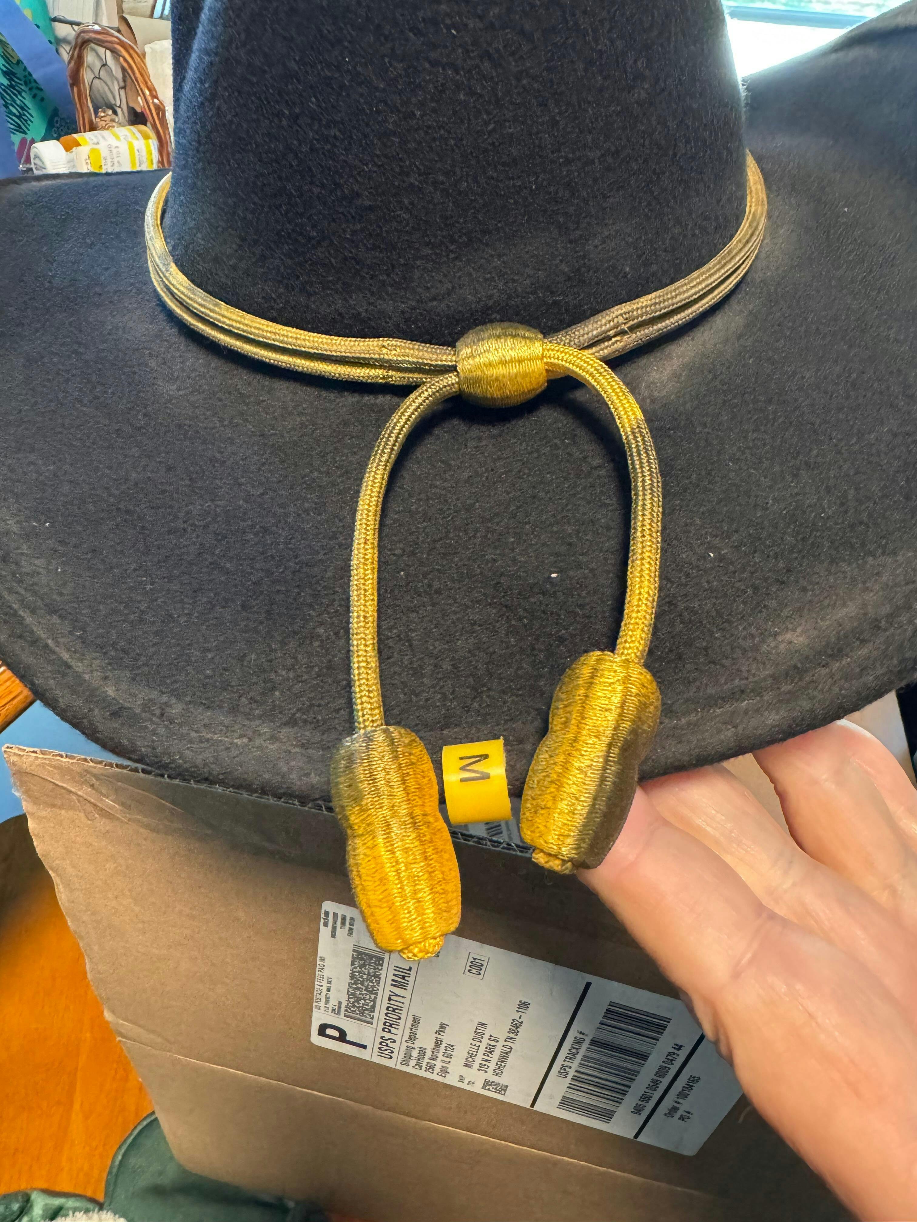 We received our order and were disappointed in the shape of the Stetson. It was very dusty/dirty, looked like it had been wet, and the hat bled on the acorns. See attached pictures. This is a gift we planned to send to a friend in Germany that will display the hat in a museum.