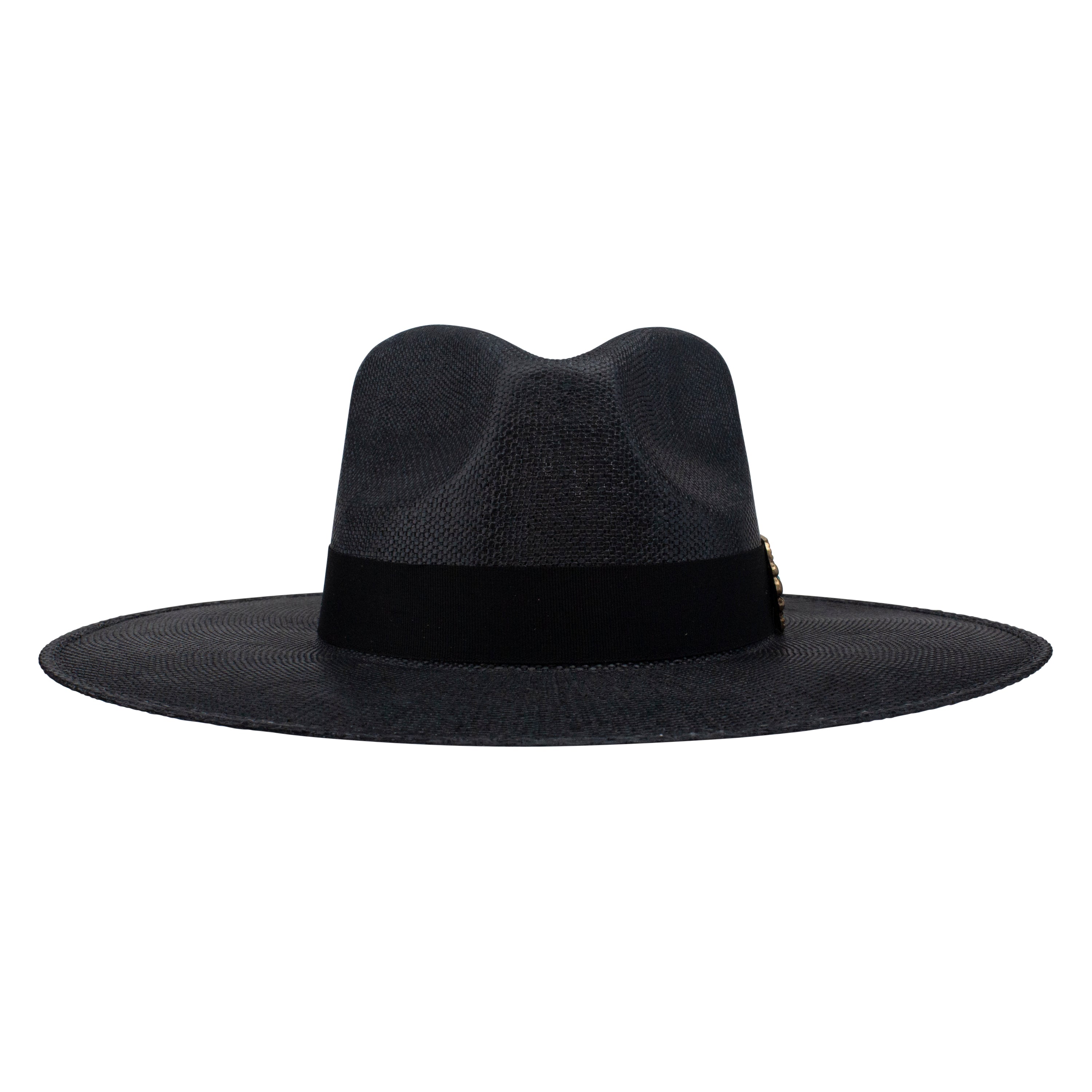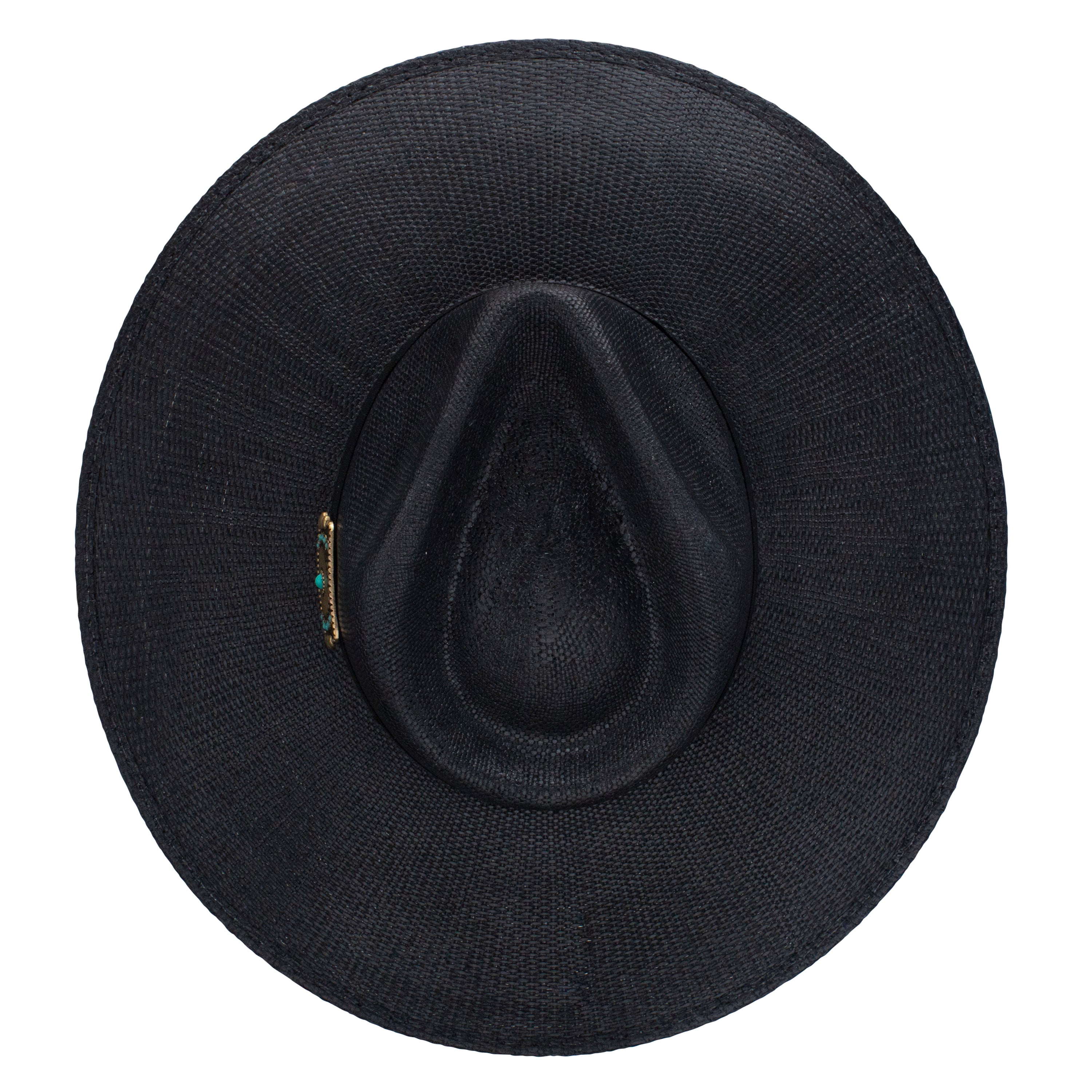 Designed by Lainey Wilson, this straw hat is the statement piece for this spring and summer! The Black Opal has a fabric hatband and is accented with a rectangular concho featuring turquoise and metallic detailing.